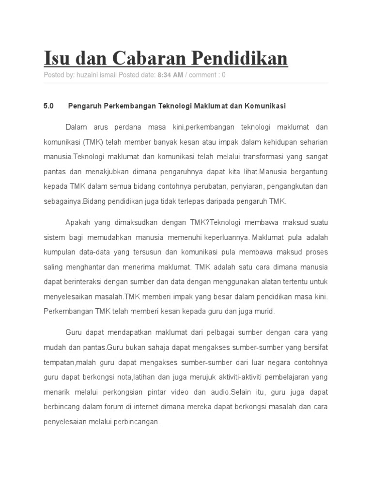 Ledakan Globalisasi Menimbulkan Masalah Sosial Pelajar Satu lagi isu dan cabaran pendidikan abad ke-21 iaitu kesan daripada ledakan globalisasi dunia serta pendedahan ICT khususnya internet kepada para pelajar sama ada di sekolah rumah atau di siber-siber telah meletakkan pelajar ke dalam. 09112017 Cabaran-cabaran ke atas agama Islam ajaran dan Syariatnya semakin hari semakin hebat. Isu pelaksanaan Pentaksiran Berasaskan Sekolah PBS merupakan satu isu pendidikan yang perlu diberi perhatian.