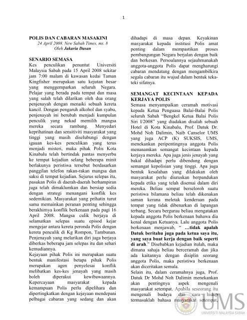 Polis Dan Cabaran Masakini Senario Semasa Kes Ums