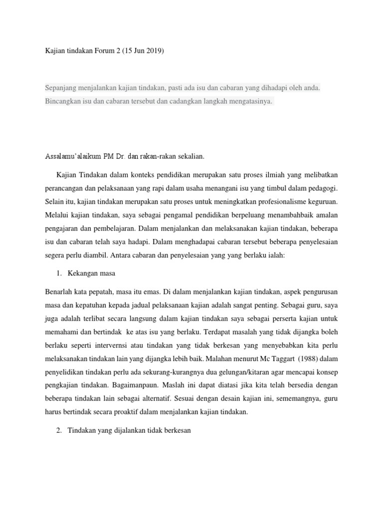 Kajian Tindakan Forum 2 Isu Dan Cabaran